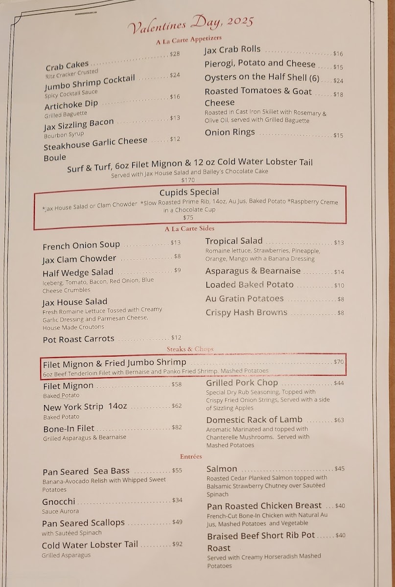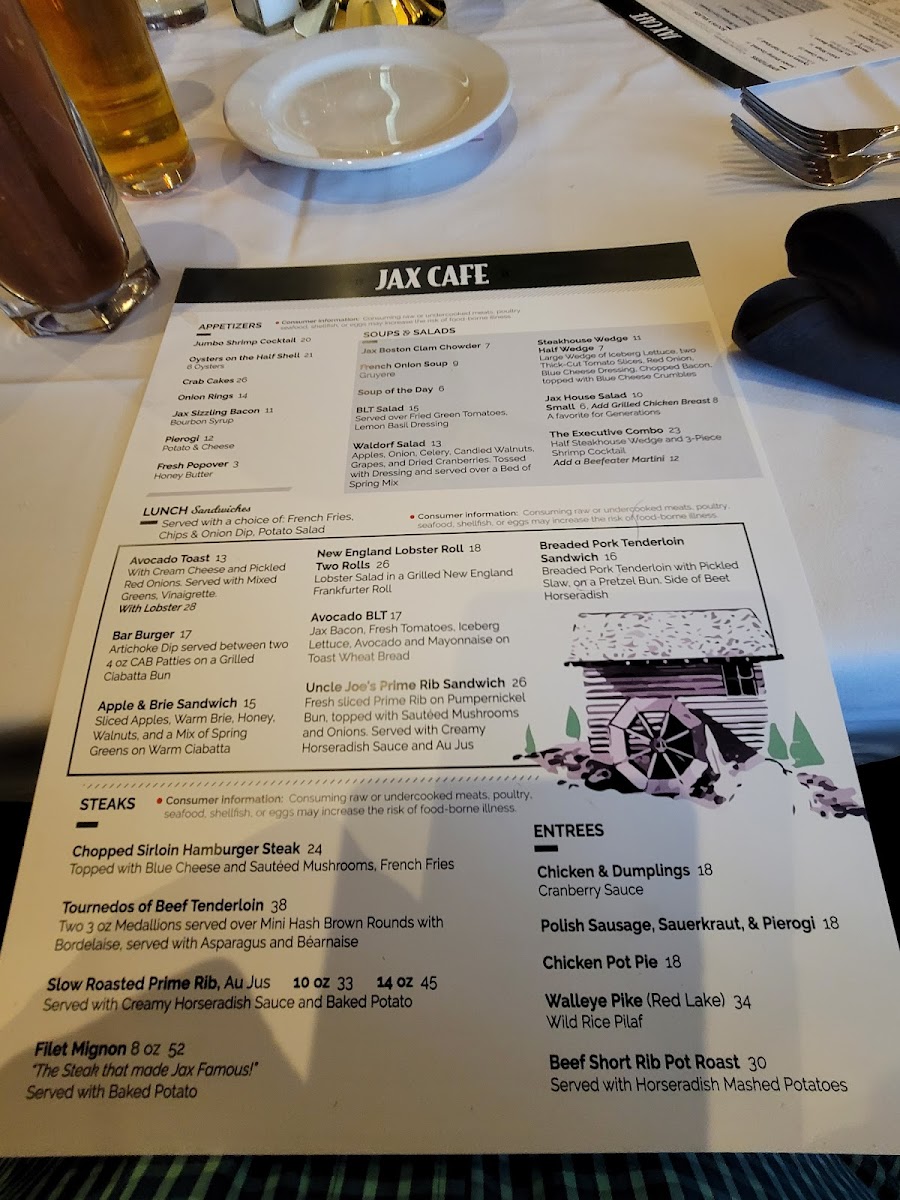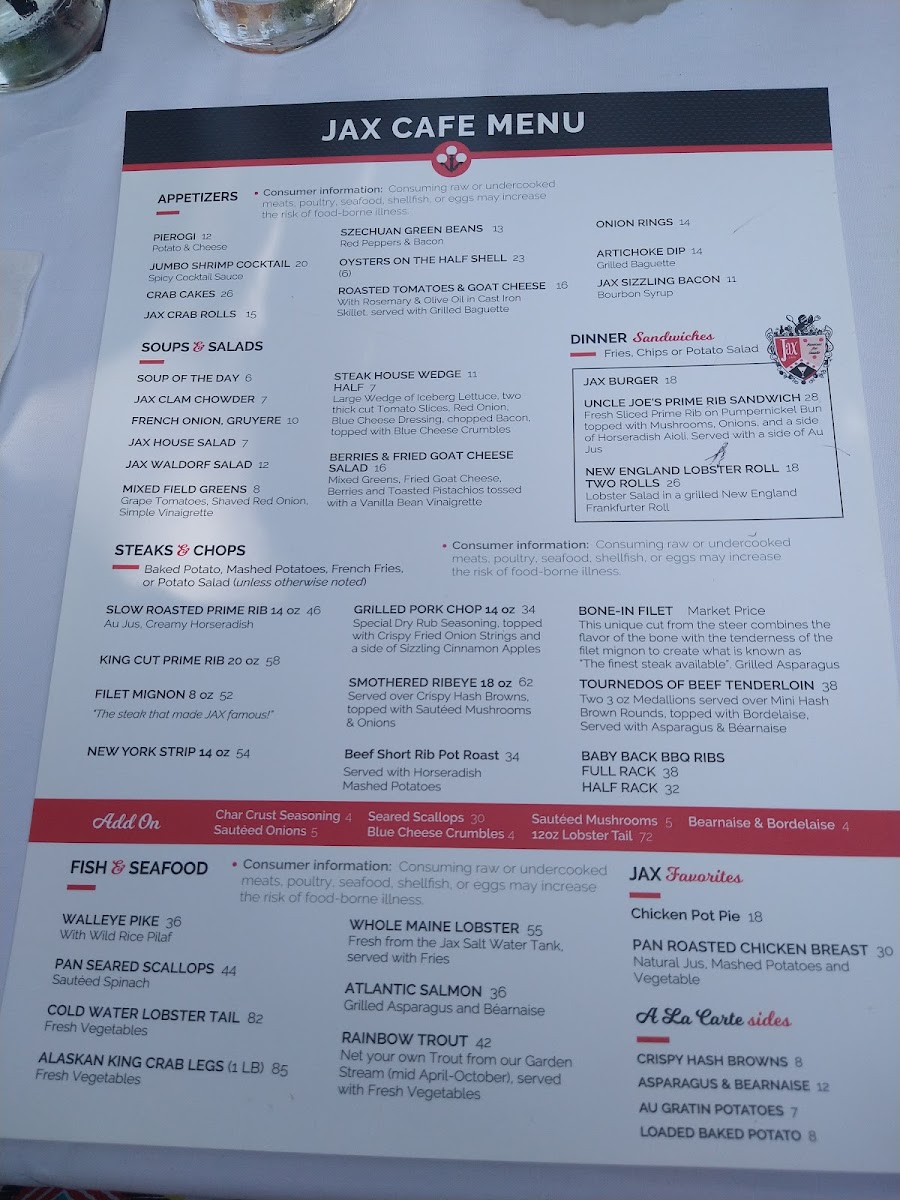 The menu at Jax Cafe offers a well-rounded selection that reflects its unique blend of American restaurant, bar, and steakhouse influences. Whether you’re stopping by for a relaxing brunch, enjoying a casual lunch, or settling in for a classic dinner, the dishes are approachable with a touch of comforting familiarity.