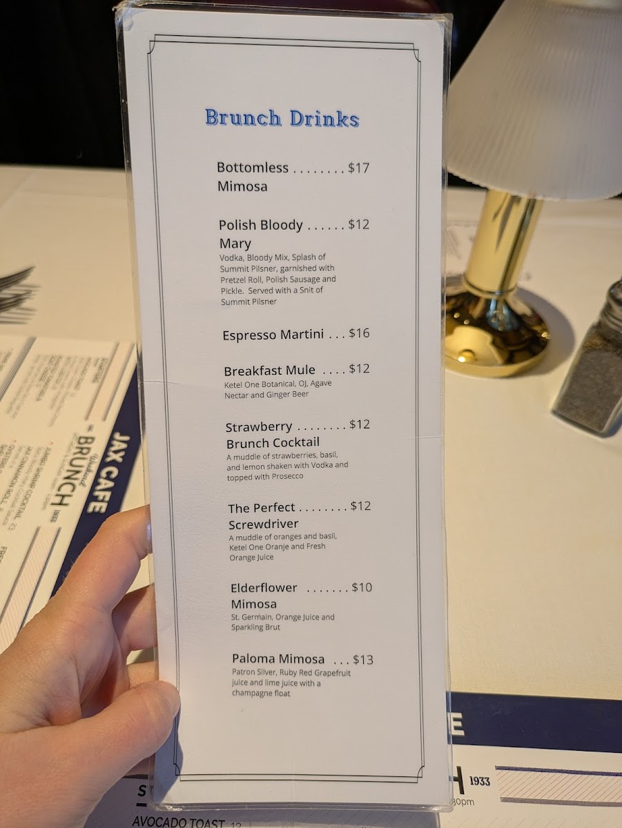 The atmosphere at Jax Cafe feels both inviting and relaxed, encouraging guests to savor their time whether lingering over breakfast pot pie and coffee or gathering with friends for oysters Rockefeller and a well-poured cocktail. The menu’s balance of familiar crowd-pleasers and elevated touches fits seamlessly with the welcoming vibe of the space, offering something satisfying for nearly every occasion throughout the day.